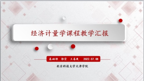 2022年7月8日下午,基础部与经济学院在线开展了《应用统计学》《经济计量学》两门课程的教学研讨活动。基础部主任范玉妹教授...