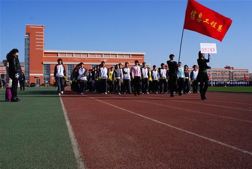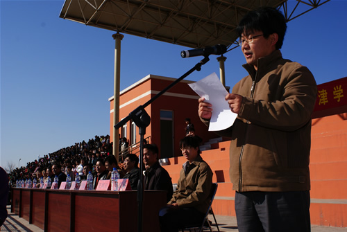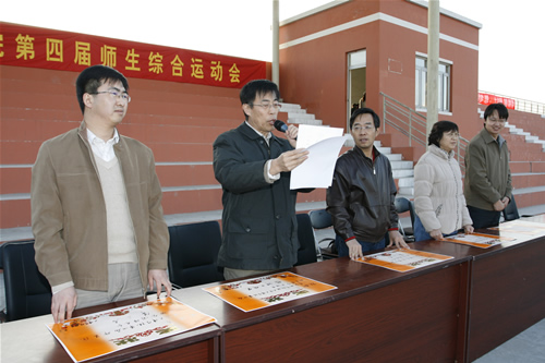 第四届师生综合运动会在体育场隆重举行。院长郭景文、党委书记王斌、副院长曹连东、财务总监肖祖刚、学院办公室主任白亮、体育部主任吴铁桥、财务处处长王俊敏、基建后勤处处长王兴元、图书馆馆长刘淑娥、学生处处长盛佳伟、团委书记叶振楠出席开幕式。院长郭景文宣布运动会开幕,党委书记王斌致辞并祝运动会取得圆满成功。开幕式由团委书记叶振楠主持。