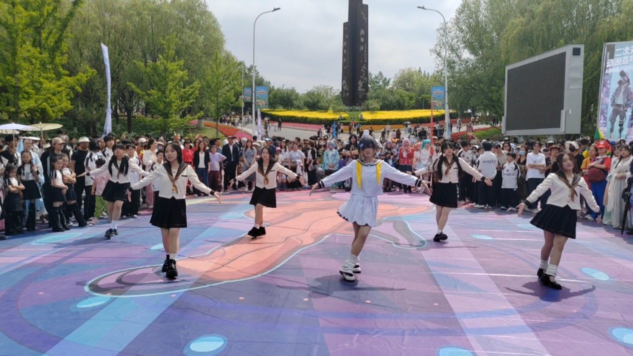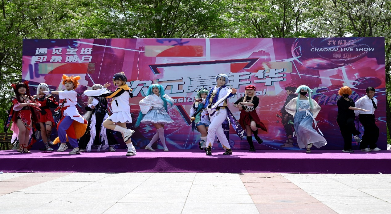 动漫社成员们身着精美的动漫角色服装,手持特制的道具,为游客们带来了一场全新的视觉盛宴。学院艺术团街舞社的同学,首先以活力四溢的街舞表演震撼开场,瞬间点燃了现场的热情,赢得了观众的喝彩和阵阵掌声。在这种高涨的气氛下,动漫社成员们纷纷走上巡游路线,他们不仅展示了角色的外在魅力,还通过生动有趣的互动将二次元动漫和现实世界完美融合,吸引了众多游客驻足观看,与自己喜爱的动漫角色合影留念。