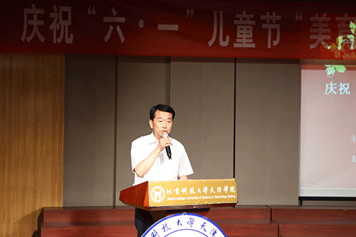 活动首先由天津市教育两委驻村工作组组长罗秋明做开场致辞,并主持本次活动的第一部分“美育实践基地揭牌仪式”。市教育两委驻村工作组一直致力于对偏远地区中小学的美育建设,此次美育实践基地的建立,就是在《国务院办公厅关于全面加强和改进学校美育工作的意见》和《天津市人民政府办公厅关于全面加强和改进学校美育工作的实施意见》的精神指导下,在市教育两委领导的关心下,在市教委体卫艺处大力支持下,由老王论坛