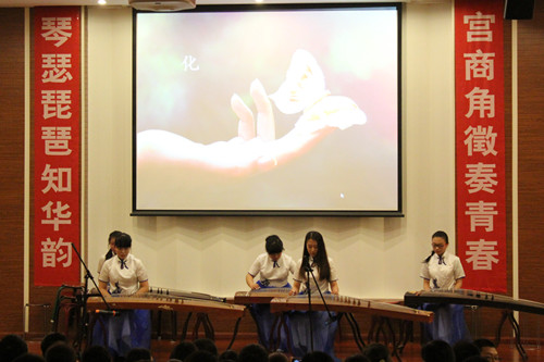 本次音乐会由艺术教育中心主办,学生艺术团民乐团承办。演出开始前,学术报告厅内座无虚席。在一段精彩的开场视频后主持人宣布演出正式开始,在学生艺术团民乐团指导老师陈倩的指挥下,一首《花好月圆》完美开场,紧接着陈倩老师为观众详细的介绍了学生艺术团民乐团的基本编制,并且让每个声部弹奏了一小段乐曲,使观众能够更好的了解每种乐器的独特音色,从而更深入的理解民族器乐。接下来学生艺术团民乐团带来了一首大合奏《阿眉族舞曲》,我国台湾省的高山族是一个能歌善舞的民族,作为高山族人口最多的一支族群,阿眉族人更是个中翘楚,他们用歌舞抒发情感,用歌舞赞美生活,从歌舞中获得力量,这首曲子更是将这种精神完美的展现出来。之后学生艺术团民乐团为我们带来了一个新颖的节目,音乐相声。通过唢呐、笙和语言的巧妙结合,表现了我国传统民族乐器的魅力。随后,学生艺术团民乐团带来了传统曲目古筝重奏《梁祝》和琵琶重奏《送我一支玫瑰花》,一个婉转凄美,一个热情似火,两曲相互呼应,充分展现了这两种传统乐器的特色与魅力。上半场的演出在琵琶声中结束,随后的串场视频记录了学生艺术团民乐团这些年成长的点点滴滴,有欢笑,有泪水,有失落,有成功。往事历历在目,不少团员都流下了感动的泪水。下半场由《风居住的街道》温情开场,二胡与键盘,一个古典,一个现代,一个深沉,一个开朗,一个韵味悠长,一个清新明快,再配之伴舞的柔美,三者搭配交织,互诉衷肠,仿佛一场穿越时空的对话。紧接着民乐团又为大家奉上一首琵琶曲《欢沁》,琵琶在曲中的表现力颠覆了人们对琵琶曲的常规认识,而钢琴的伴奏则给人一种现代气息,闭上双眼,仿佛看见一群孩童嬉闹于林间或市井。随后,低音声部为大家奉上了一曲由阮族乐器改编的《加州旅馆》。此曲由阮族乐器,低音贝司,吉他等乐器改编的《加州旅馆》无论从视觉还是听觉上都给大家带来了耳目一新的感觉。接着在大提琴低沉婉转与二胡细腻凄凉的旋律中,响起了那首熟悉的《菊花台》,相信在场的观众会在二胡与大提琴的缠绵中体会到“满城尽带黄金甲”的爱恨情仇。凄美的《菊花台》之后是一首充满异域风情的唢呐独奏《阳光》。唢呐一直是传统民乐中最为高亢的乐器之一,在传统民乐现代化的进程中,现代人赋予了唢呐更多的韵味,演绎者纯熟的技巧,活泼欢快的旋律使人眼前一亮,不由得拍手叫好。众所周知,休闲游戏文化是新世纪新兴文化的一部分,在不断发展的过程中,诞生了许多深受大众喜爱的佳作,接下来是民乐小合奏《斗地主》。此曲是对游戏音乐的演绎,让现场的观众们领略了新民乐的别样风采。最后,音乐会进入尾声。学生艺术团民乐团为大家带来了一曲他们的获奖曲目《瑶族舞曲》。该作品创作于20世纪50年代,采用单乐章复三段体结构。作曲家以民间舞曲《长鼓歌舞》为素材,用管弦乐的手法,丰富、生动的展现了瑶族民众欢歌热舞的喜庆场面。乐曲用优美的旋律,表现了能歌善舞的瑶族人民的生活情貌。一曲结束后,掌声经久不息。于是民乐团又为大家带来了一首返场曲目《拉德斯基进行曲》,在掌声与音乐的交织中,音乐会终于圆满的落下了帷幕。