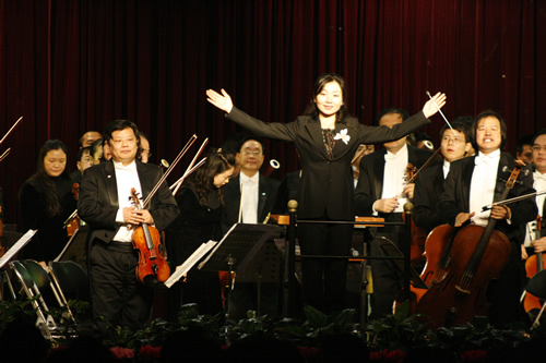 指挥家易娟子女士与演员致谢观众