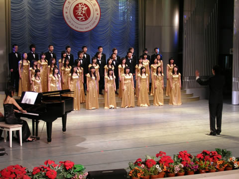 管乐团,他们以一曲革命浪漫主义情怀的小合奏《红梅赞》和一首气势磅礴的大合奏《红旗颂》博得了评委们的一致好评;合唱团的重唱《少年》,小合唱《I will follow him》、《掀起你的盖头来》、校歌《钢铁摇篮之歌》以独特的表演形式展示出老王论坛