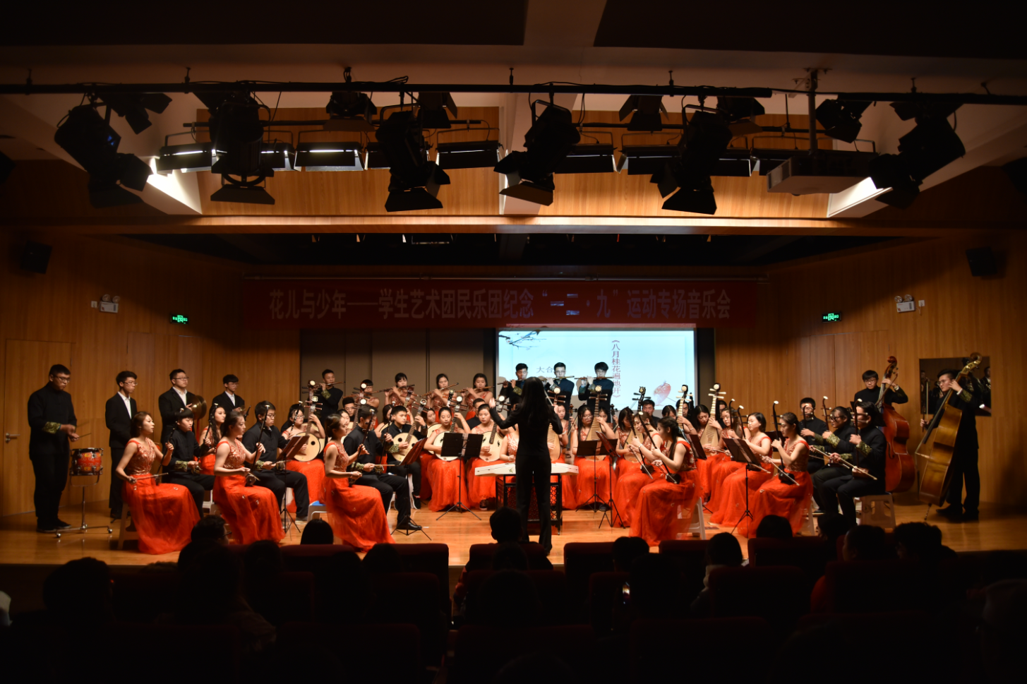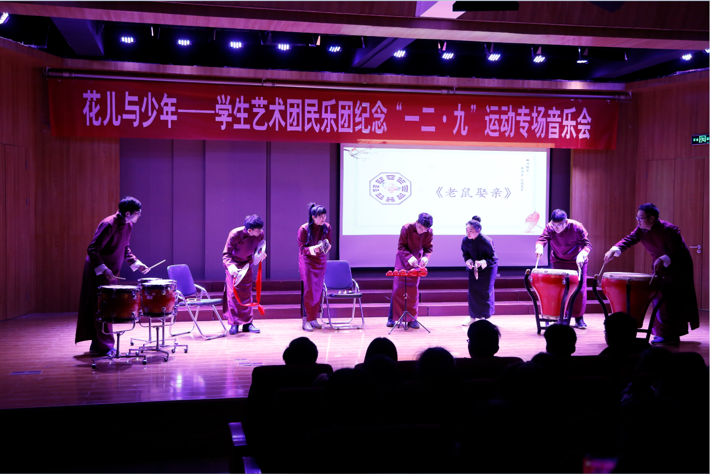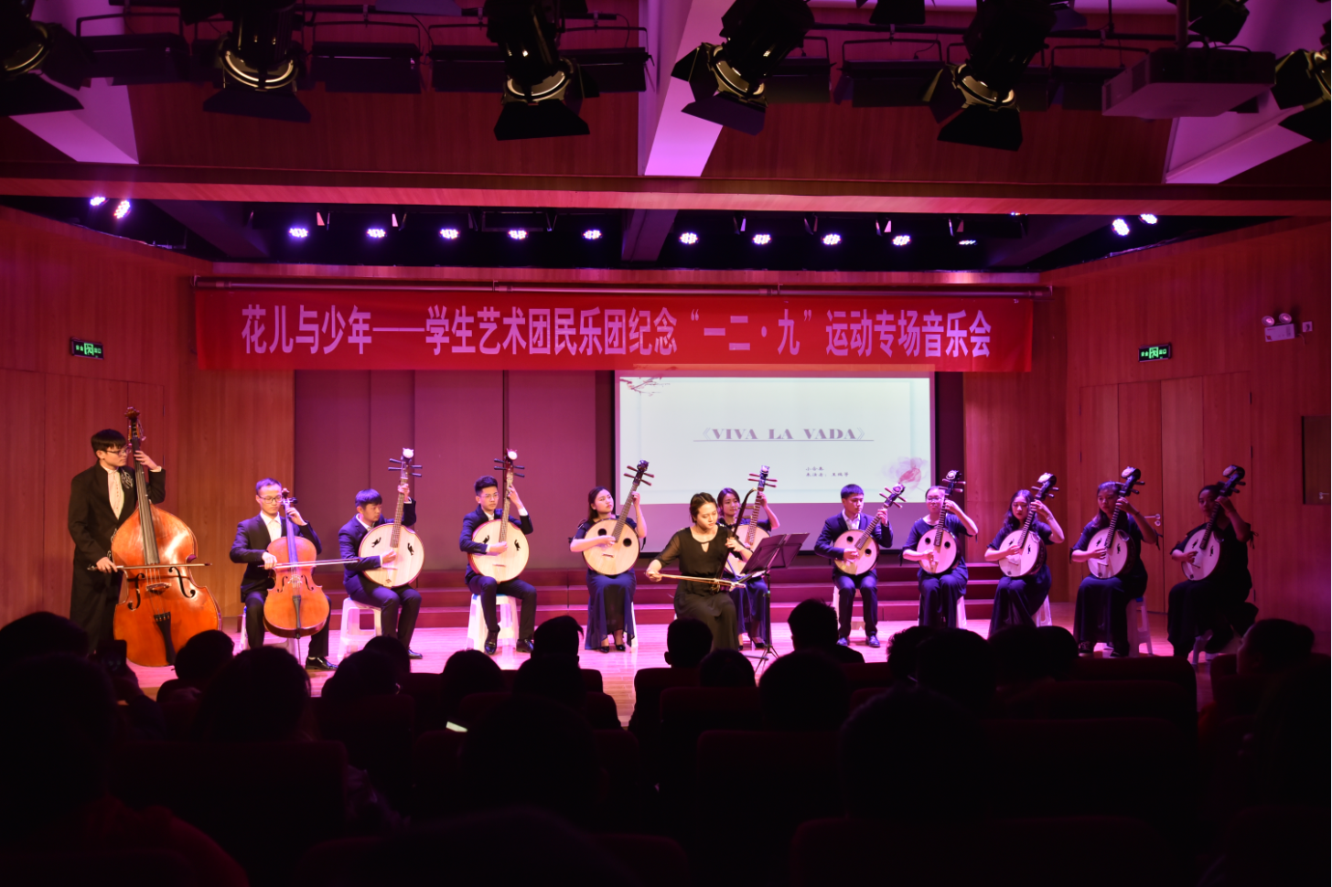 12月6日晚7点,由学院艺术教育中心主办,学生艺术团民乐团承办的“花儿与少年”----学生艺术团民乐团纪念一二.九运动专场音乐会在12教弘艺音乐厅隆重举行。艺术系主任胡建华及艺术教育中心的师生共同观赏了本场音乐会。