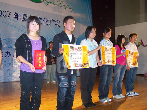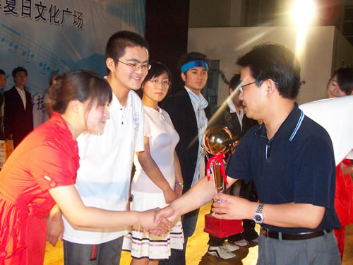季军获奖作品,由艺术团戏剧社选送的《考验》。 亚军作品,由金融工程06级选送的原创作品《新闻联播》。 冠军作品,由国贸专业06级选送的《Q版伯哥与台妹》。 单项奖获奖选手上台领奖。 党委副书记、副院长王斌为前三甲选手颁奖。 至此,第二届校园相声小品大赛圆满结束。