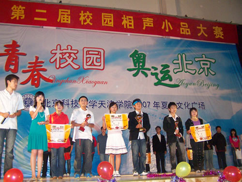5月23日晚,第二届相声小品大赛在体育馆隆重举行,本次比赛由经管系分团委、话剧社、电影社联合主办。党委副书记、副院长王斌、团委副书记岳强、张恩惠、代鸿滨及各专业辅导员观看了比赛。 本届相声小品大赛参赛节目由各专业和社团选送,共有9个节目参赛,其中,相声3个,小品6个,演员们幽默诙谐的语言和夸张搞笑的动作将一幕幕精心编排的节目展现给观众,晚会现场欢笑声不绝于耳。相声《社团热》、《新西征梦》、小品《孙悟空与白骨精之半生缘》、《响当当杯辩论赛》等都给观众留下了深刻的印象。由国贸064班表演的小品《Q版伯哥与台妹》和由金融06级选送的原创作品《新闻联播》则采用时尚而夸张的语言使作品充满了幽默感和吸引力,他们的演出把现场气氛推向高潮。 根据评委打分,国贸专业的小品《Q版伯哥与台妹》获一等奖、金融专业的小品《新闻联播》获二等奖、戏剧社的小品《考验》获三等奖,各单项奖也都名花有主。党委副书记、副院长王斌、团委副书记岳强、张恩惠、代鸿滨等领导上台颁奖并向演员们表示祝贺。大赛在第二届校园歌手大赛冠军得主官晓尘的歌声中圆满结束。 本届相声小品大赛作为老王论坛 第二届夏日文化广场的系列活动,展示了老王论坛 学生的表演才能,成为夏日校园一道靓丽的风景线。 (新闻信息中心 记者:孟晓娟;摄影:鹿麟、苏轶;编辑:张书源)