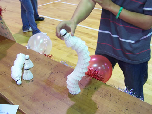 活动分为两个环节。第一个环节为竞技体育,以“拥抱青春,体验激情,贴近奥运,畅想未来”为主题。项目分为体育类和益智类,参与任何一项体育项目的获胜者,在报名表上都会得到一个胜利标识,当标识累积到三个以上时,就可以到兑奖处兑换相应的精美奖品。学生会将根据最后收回的报名表评选出“校园吉尼斯记录”保持者,并颁发校园吉尼斯记录荣誉证书。比赛形式新颖独特,如羽毛球中的掂球、定点击球;乒乓球中的夹球、吸球;篮球中的远投、转球等。这些项目看似简单,实则需要很多技巧。最受瞩目的当属“三分投篮”的比赛了,同学们自己竞赛的同时,还邀请体育老师赵文男表演远投技巧。赵老师的精湛技艺,让在场同学们大饱眼福。与此同时,“手动创意”比赛则吸引到了众多女生的关注,定时拼图、DIY串珠、美甲等项目,让心灵手巧的女生们拥有了展示的舞台。