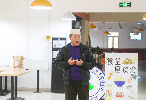 学生会常代共建委员会联合后勤处,在二食堂举办以“欲食天下新鲜,安全牢记心间”为主题的食堂座谈会,出席本次座谈会的有后勤处饮食中心主任赵学权老师,学校食堂经理及工作人员和学生代表们。