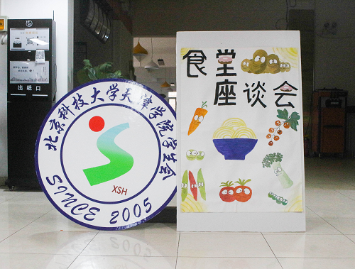 最后,食堂经理及工作人员和老师在横幅上签字并合影留念。食堂座谈会最终圆满结束。饮食是在校生活中很重要的一部分,后勤方面的有效监管、食堂方面积极的态度和学生方面有效的监督,让我们看到一个优于以往的发展趋势。食堂座谈会不仅充分反映了同学们的意见及态度,同时也让同学们更加理解食堂工作人员的工作。院学生会常代委员会将继续探索新的工作方式,为后勤、食堂和学生之间做好枢纽工作,为学院创造更加和谐的校园就餐环境。
