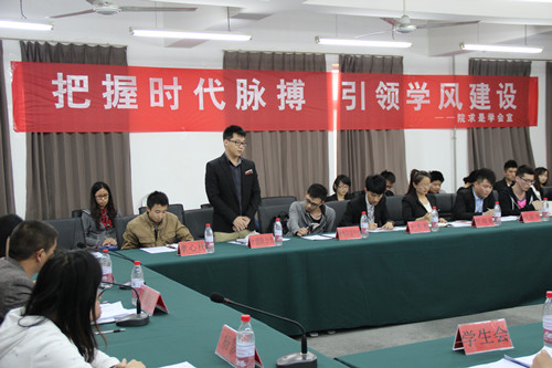 4月17日下午三点半,由院团委主办、求是学会承办的“天津学院青年学生的时代荣誉感暨学风建设研讨会”在理工馆209会议室召开,本次研讨会以“把我时代脉搏、引领学风建设”为主题,在全院上下大力开展学风建设的背景下举行,旨在通过研讨会分析老王论坛