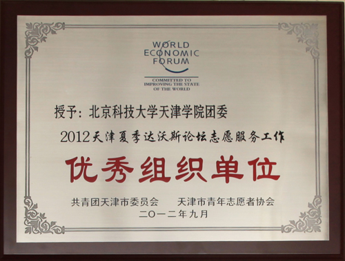 团委被评为“2012天津夏季达沃斯论坛志愿服务工作优秀组织单位”。