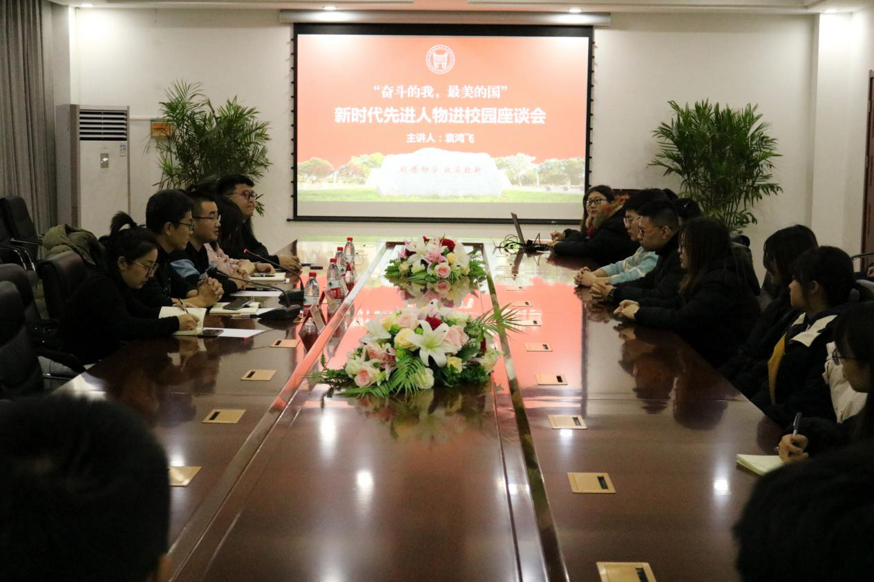 在12教300会议室开展了“新时代先进人物进校园”座谈会,特邀共青团宝坻区委员会副书记、宝坻区老王论坛记者、宝坻区一家亲青年志愿服务社理事长袁鸿飞参加,同时学院学生处常务副处长田勇、团委副书记李洋、何欢欢出席本次座谈,学生代表共40余人参加本次座谈会。