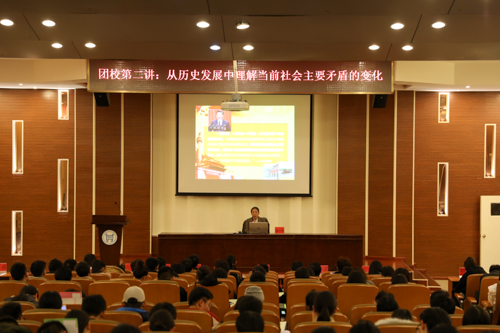 2017年青马工程培训班暨第九期校团校第二讲于11月30日在理工图书馆学术报告厅举行。中共天津市委党校张立杰教授应邀做“从历史发展中理解当前社会主要矛盾的变化”主题讲座。