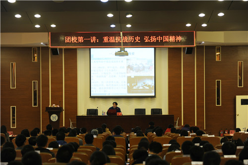 基层团组织干部进行讲座。侯杰教授以“重温抗战历史,弘扬中国精神”为主题,通过历史文献、典故及影视剧等多种途径介绍了抗日战争时期,中华民族同仇敌忾,共赴国难,同日本侵略者展开了英勇顽强的斗争,最终取得了最后胜利,谱写了惊天地、泣鬼神的壮丽史诗。通过重温那段残酷惨烈,艰苦卓绝的历史,侯教授告诫广大团员干部要弘扬伟大的抗战精神,珍惜老一辈革命先烈留下的胜利果实,牢记历史,拒绝战争,珍惜和平。侯教授以其风趣诙谐的语言和生动形象的例证博得了全体学员的热烈掌声。