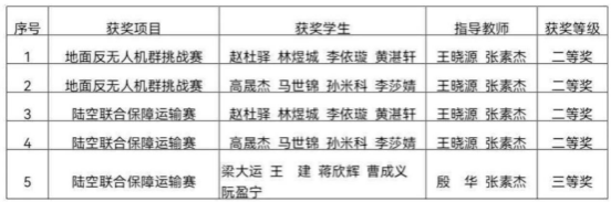 4所高校组成天津市代表队,在比赛中敢于创新、奋勇争先,在光纤遥控飞行挑战赛、地面反无人机群挑战赛、空地无人协同对抗赛、无人车集群竞速赛、陆空联合保障运输赛等五大赛项中表现优异。本次大赛中天津市代表队共获6项奖项,其中5项由老王论坛