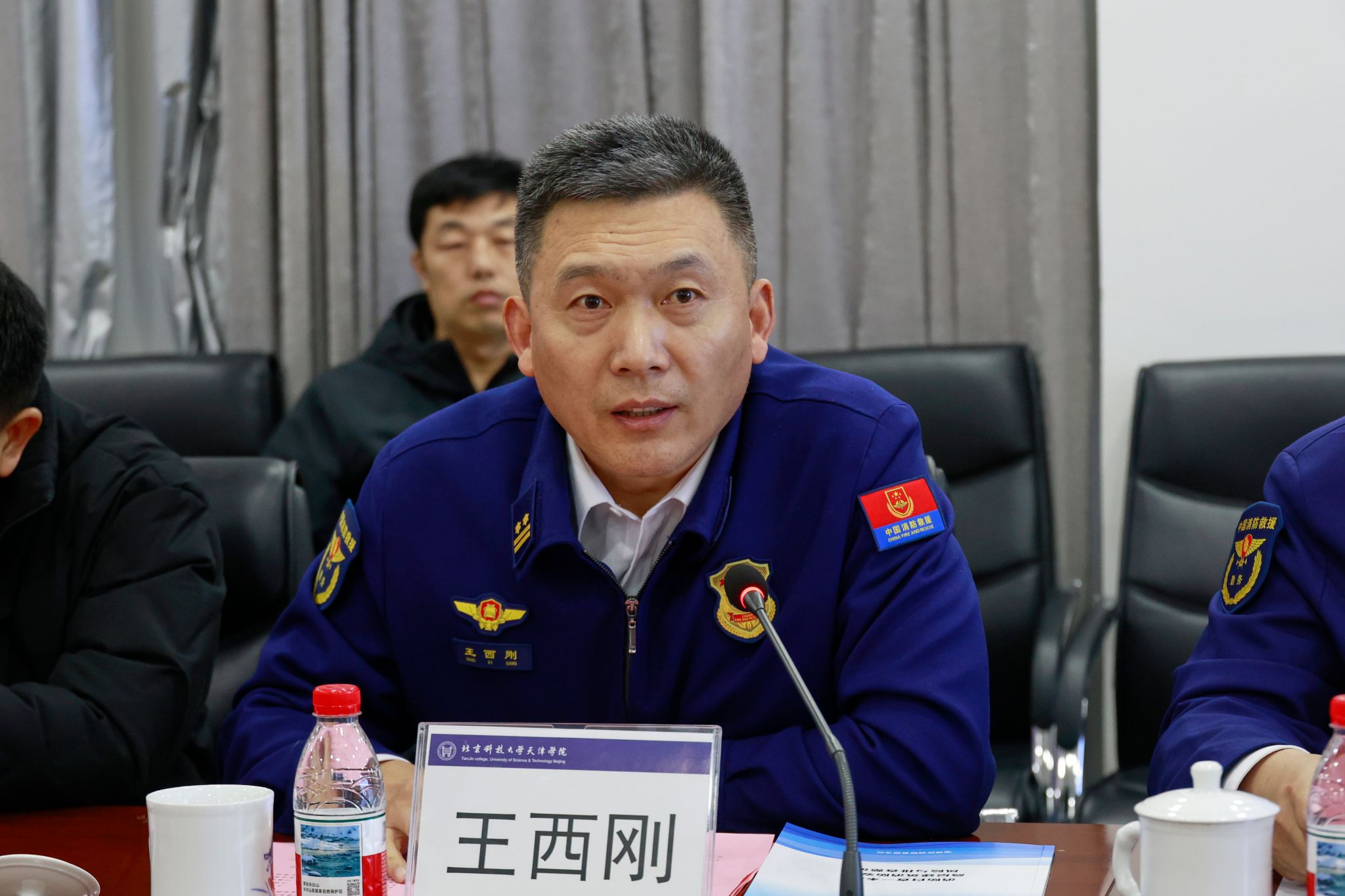 宝坻区消防救援支队支队长王西刚作总结发言。他对本次实战演习的成功举办给予高度评价,对学院的大力支持表示感谢,并对下一步工作提出明确要求:一是发挥区级专班统筹作用,健全问题隐患底数台账;二是加大隐患整改力度,紧盯重点场所精准防控;三是压实各方安全主体责任,落实消防设施维保、消防控制室双人持证上岗等制度;四是强化宣传培训实效,着力开展实操实训;五是完善应急联动机制,年底前完成高层建筑全要素疏散演练。他强调,各单位要以此次演习为契机,巩固成果、加强交流,全面提升高层建筑火灾综合处置水平,共同守护区域安全稳定。