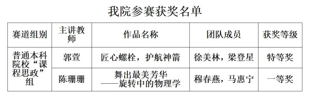将以此次比赛获奖为契机,继续推进课程思政建设,积极营造课程思政教学改革氛围,引导教师主动承担课程思政主体责任,充分发挥教师队伍“主力军”、课程建设“主战场”、课堂教学“主渠道”作用,寓价值观引导于知识传授和能力培养之中,使各类课程与思政课程同向同行,形成协同效应,构建全员全程全方位育人大格局,培养德智体美劳全面发展的一流应用型人才。