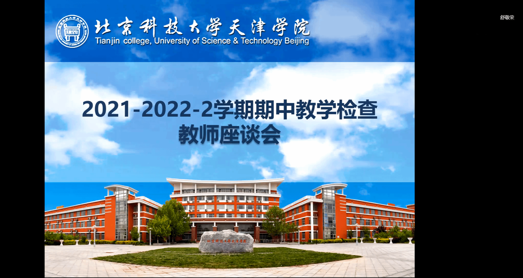 为听取师生对改进和加强教学管理、教学保障、教风学风等工作的意见和建议,及时发现和解决教学过程中存在的问题,进一步提升教学质量,根据期中教学检查工作总体安排,6月1日下午,学院通过腾讯会议分别召开教师和学生线上座谈会。教师座谈会由教务处处长舒敬荣主持,院长助理兼学术委员会主席宋存义,院办、教务处、人事处、基建产业处、后勤处、实验室管理中心、信息化建设管理办公室、图书馆、教学质量监控中心、教师发展中心等部门负责人及各教学单位教师代表、教务处有关人员参加会议。学生座谈会由教务处副处长杨国梓主持,教务处、学生处、教学质量监控中心负责人及各二级院系学生代表、教务处有关人员参加会议。