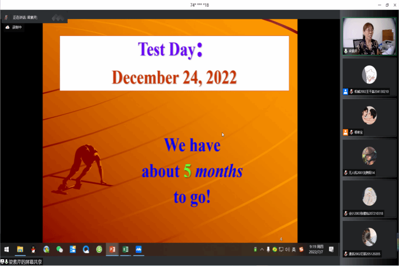 梁素芹教授通过精析2018-2022年考研真题,为同学们总结了考研英语的规律及答题规则,并根据英语一、英语二考试内容的不同,介绍了最新的考研大纲,分别从完形填空、阅读理解、新题型、翻译、写作五个题型讲解了备考方法与应试策略。讲座最后,梁教授与参会同学亲切交流,答疑解惑。