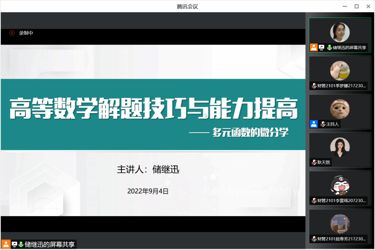 本次讲座围绕多元函数微分学展开,结合近5年数学考研真题进行讲解,梳理相关知识点,介绍了关于二重积分的概念、性质、坐标系下二重积分的计算、导数、偏导数以及全微分的知识,储老师根据同学们在学习高数中出现较多的问题提出了解决方案,加深了同学们对高数学习的认知与理解,详细讲解了各种相关例题,指导同学们如何分析和解答题目,教给同学们很多新颖的解题技巧与方法,更好的拓展了同学们的思维。