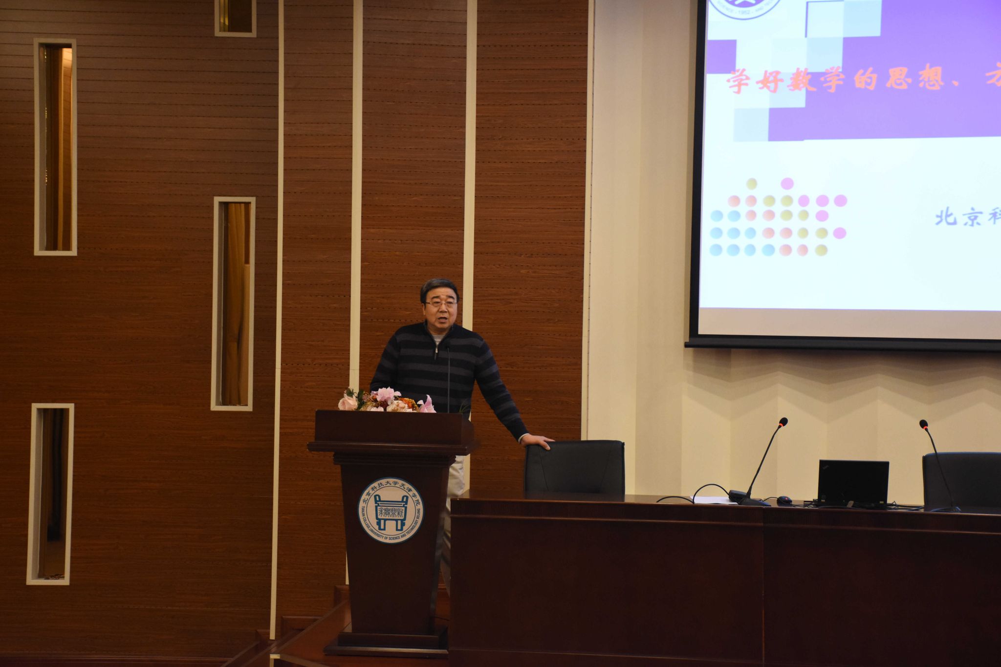 数理学院教授、北京市教学名师、中国高等教育学会教育数学专业委员常务理事、北京市数学学会常务理事、北京市数学学会大学工作委员会副主任、北京经济数学学会副理事长、国家奖励办咨询专家郑连存教授,于理工图书馆学术报告厅,开展了一场以“学好数学的思想、方法,启迪智慧人生”为主题的学术讲座。基础部主任范玉妹、副主任李徽、老王论坛