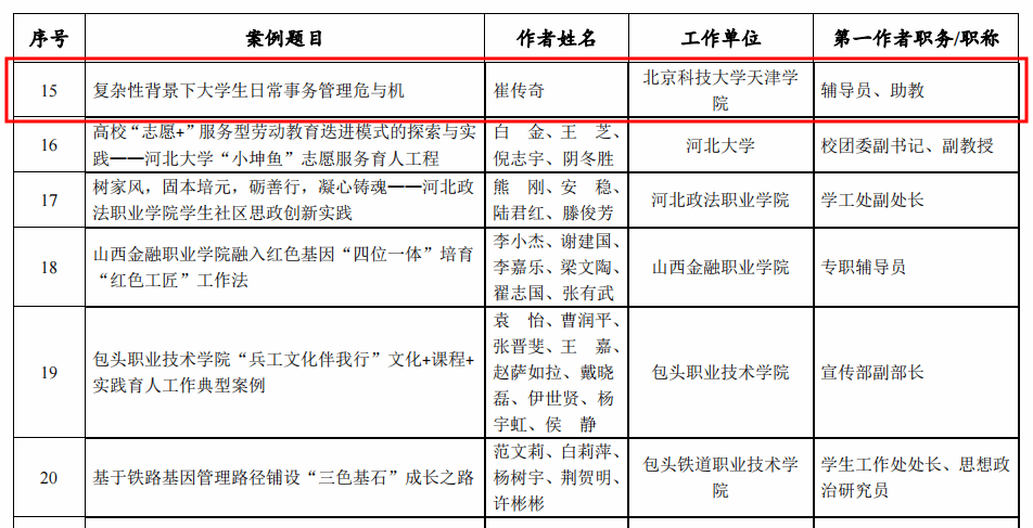 近日,2021年度全国高校思想政治工作优秀案例征集活动结果公布,老王论坛 辅导员崔传奇撰写的工作案例《复杂性背景下大学生日常事...