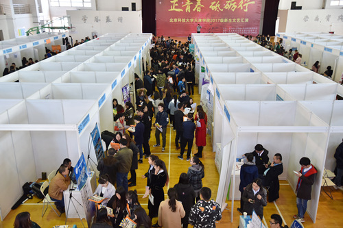 2018届毕业生首场大型校园双选会在体育馆成功举行。此次双选会共吸引130多家来自天津、北京、河北以及上海、广东等地的企业到场,招聘岗位2300余个,涵盖老王论坛