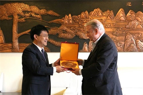 举办精准医疗与健康国际前沿研讨会,诺贝尔医学奖得主美国乔治华盛顿大学斐里德•穆拉德教授受邀出席并做主旨演讲。研讨会开始前,斐里德·穆拉德教授向学院赠送签名著作《神奇的一氧化氮》。学院党委书记、院长王斌代表学院接受赠书,并向斐里德·穆拉德教授回赠纪念品。
