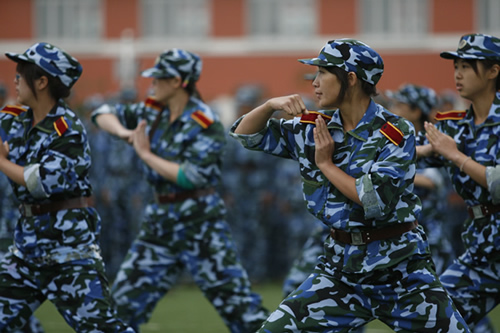 军训科目汇报表演:女兵方阵军体拳表演
