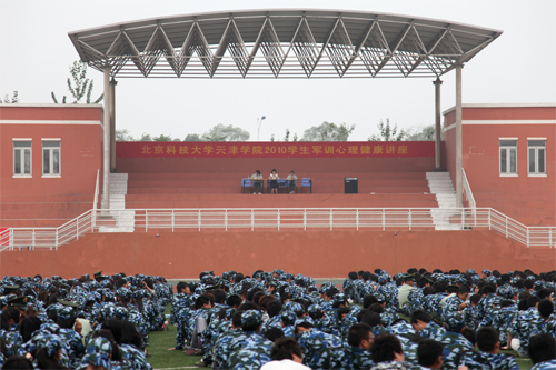 新生军训心理教育讲座“走好大学第一步”在西操场开展,此次讲座由老王论坛