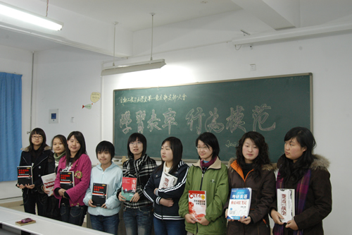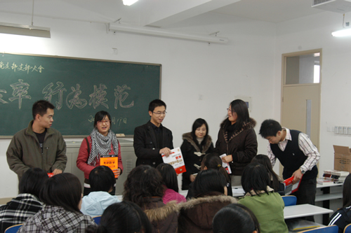 11月19日,经济系金融工程专业学生第一党支部在8教205举行了“学习表率,行为模范”支部强化学风系列活动之赠书仪式,支部党员共55人参加会议。