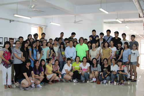 下午14时整,两位教授应李文红老师邀请参观了我校视觉传达专业学生的绘画作品、画室。大卫·帕格尔(David Pagel)教授对学生的作品给予高度评价并认真答复了每一名学生的提问,易凯教授对学生们提出期许。