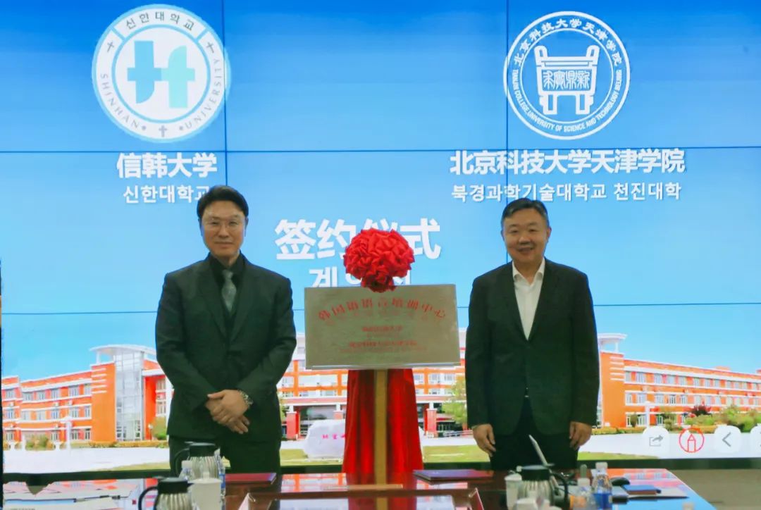 康圣钟校长和丁煦生院长为韩国语语言培训中心揭牌