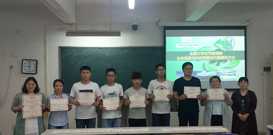 大学生节能减排社会实践与科技竞赛校内赛颁奖在8教205举行。环境工程系主任汪群慧教授、学生竞赛指导教师刘俊杰、班岚、李敏、宋娜、张丽荣等出席了会议,并为在校内赛中获奖的团队颁奖。