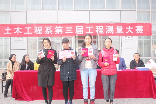本次测量大赛,经过理论知识笔试的初赛选拔,共有10支队伍进入决赛。经过紧张激烈的技能测试决赛,最终由马舒琴、覃悦、罗莹莹、任玥颐四名同学组成的参赛小组荣获本次大赛团队一等奖,蒙秋莎、张思迪、罗莹莹同学荣获优秀个人奖。土木工程系第三届工程测量大赛在热烈的掌声中圆满完成。