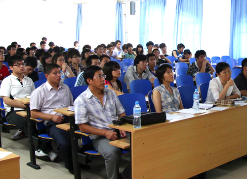 材料系07级全体同学参加了答辩会,08级学生旁听。本次答辩以小组为单位,07级53名同学共分成八个小组,每个小组就炼铁、炼钢及轧钢等生产过程中,选取一或两个工序,集中本组在本次实习中搜集到的工艺收据、工序图片、设备照片等资料,结合所掌握的专业理论知识,资源共享、共同讨论,形成小组的答辩主题、制作出答辩演示片,并推举一名代表负责介绍、主答,其他同组同学参与辅答。八个答辩组从选题、撰稿、演示片制作等方面都做了精心准备,针对实习企业的典型、关键工序过程进行选题,内容涉及:烧结、高炉炼铁、转炉炼钢、连铸连轧、冷轧镀锌、能源管理、节能环保等诸多方面,展现出同学们扎实的专业理论基础和强烈的求知欲望。