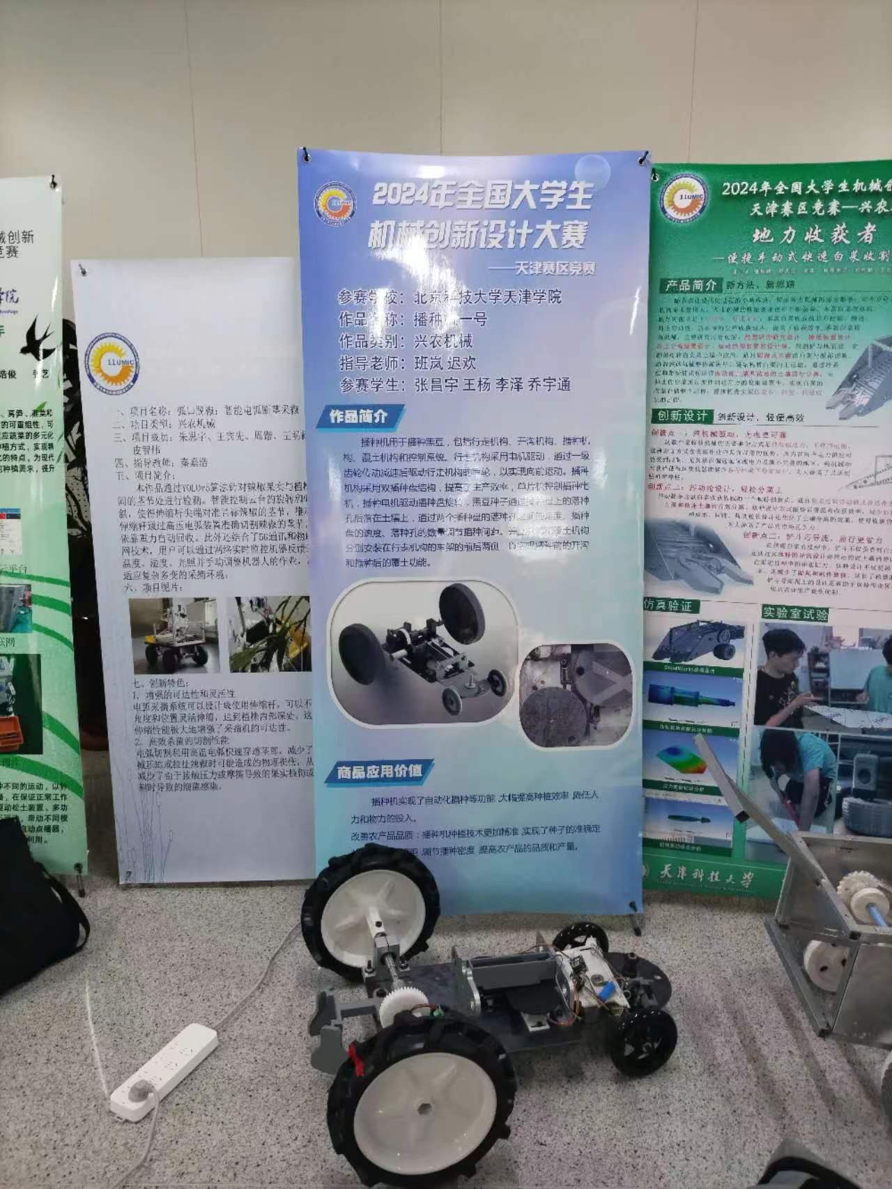 共有来自天津市的15所普通高校学生的142件作品参加比赛,共评选出一等奖14件,二等奖21件,三等奖36件。智能制造学院班岚和迟欢两位老师指导,学生张昌宇、王杨、乔宇通和李泽搭建的“播种机一号”作品荣获天津市三等奖。此次比赛中,特邀智能制造学院教师史荣武老师和辅导员张军老师担任评委。