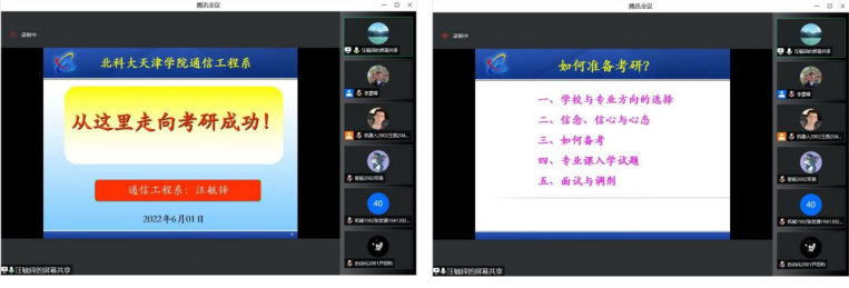 学生的考研热情,明确考研目标,掌握考研技巧,智能制造学院分团委于6月1日18:30举办了考研“面对面”经验交流会,智能制造学院副院长班岚副教授、机械工程系主任朱超甫教授、通信工程系主任汪毓铎教授出席本次活动并作了主题宣讲和经验交流,2022届考研成绩优异的宋作鹏与曲晓倩同学为19-21级同学做了专题经验分享,活动由分团委书记李雲啸主持。