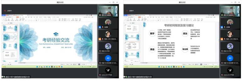 首先,宋作鹏与曲晓倩两位同学分享了他们丰富的备考经验,详细的介绍了考研如何规划、各科如何复习、作息如何安排、信息如何收集、课程如何选择等方面的信息,为参加此次经验交流会的广大同学提供了帮助和指引。