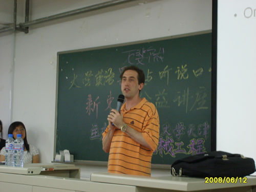 “听说口语”的主讲人石斐然老师勉励在场同学“Oral English is bring words to life!”