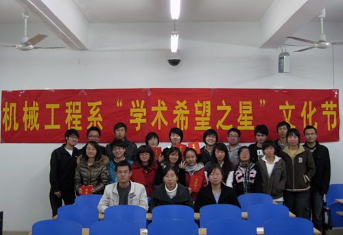 2010年11月4日晚,由机械工程系分团委组织部举办的第四届“学术希望之星”在九教207成功举办。担任此次的评委是来自我系的优秀教师孔继利,龚艳茹和马立坤老师。