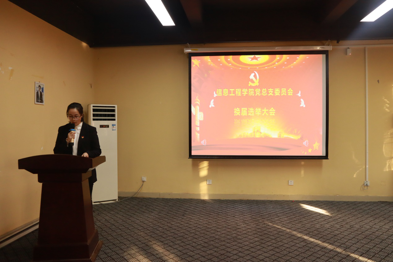 首先主持人李俊杰向大会报告实到党员人数,应到正式党员46名,实到正式党员42名,符合换届选举的有关规定,并介绍了本次会议的流程。夏华一同志代表信息工程学院总支部委员会向大会作了工作报告,全面总结了三年来信息工程学院党总支在党建、思想政治教育以及教学工作等方面的情况,并对信息工程学院未来三年发展提出总体展望。