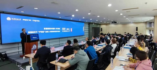 在圆桌论坛环节,来自天津的五所院校专家就“数智时代下人才培养方案如何改革?”、“课程体系改革师资力量如何分配?“等问题进行研讨,分享观点,交流经验。