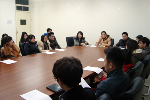 为及时把握我系学生寒假假期思想动态及新学期学业规划,增强师生互动,管理系于2012年3月12日晚,在1教309召开了管理系寒假返校座谈会。管理系学生工作负责人冯海燕老师、管理系分团委书记鹿群老师出席会议,与同学们就近期国内外时事热点、寒假所见所闻、家乡故事、就业形势及新学期计划等若干问题展开了讨论。