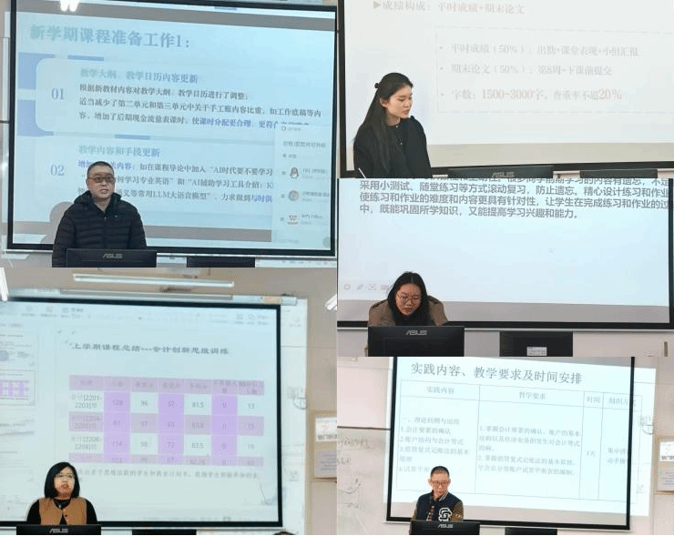 教师说课开始前,王晓欣老师就开展教师说课活动的重要意义以及本次说课的活动安排进行简要介绍。随后,教师们按照课程团队安排依次介绍上学期课程总结及新学期课程设计等内容。