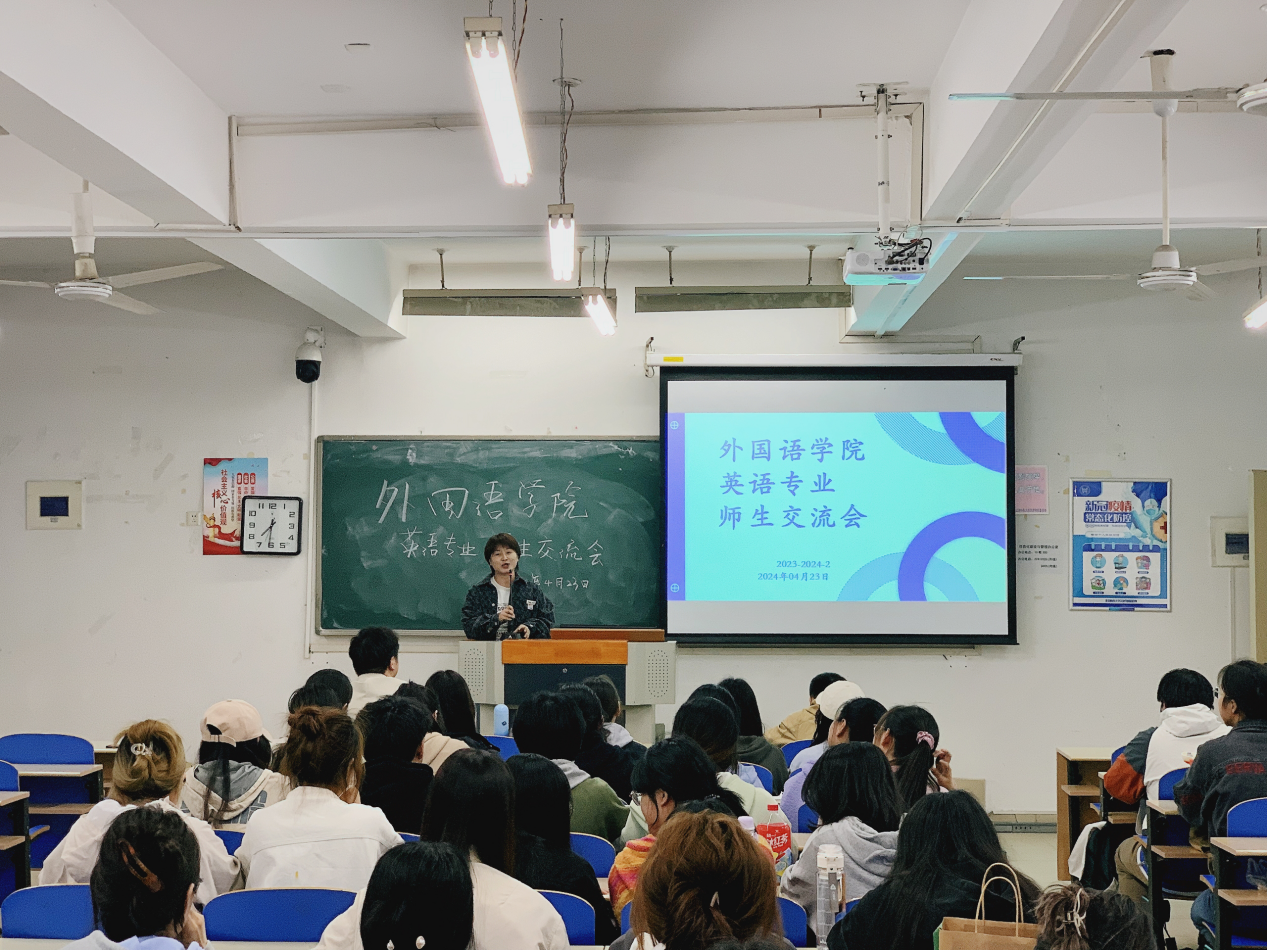 师生交流活动是推动教学工作顺利开展、营造学生良好学习氛围的重要一环。通过此类活动,教师能够更深入地了解学生的学习需求与兴趣,而学生则能够更直接地向老师表达自己的困惑与建议。4月23日晚,外国语学院英语专业在9教205教室成功举办了一场别开生面的师生面对面交流活动,旨在促进师生之间的沟通与理解,帮助学生理清奋进方向,营造和谐、浓厚的学习氛围。
