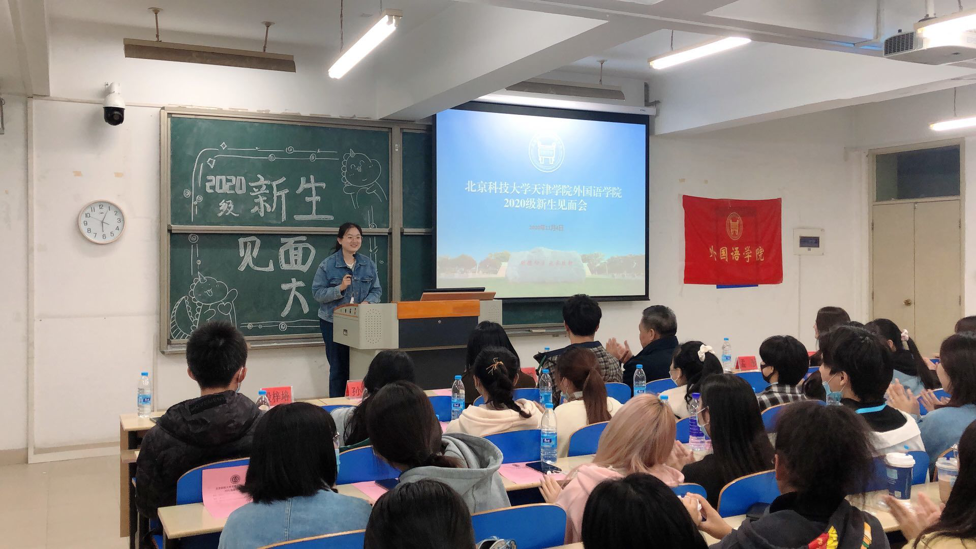 外国语学院2020级新生见面会在9教104召开。外国语学院院长张国敬、党总支书记张添善、分团委书记李萌、英专教研室主任张媛、日语教研室主任孟彤、教学秘书耿睿等老师出席本次新生见面会。本次新生见面会由2020级辅导员殷梓培主持。