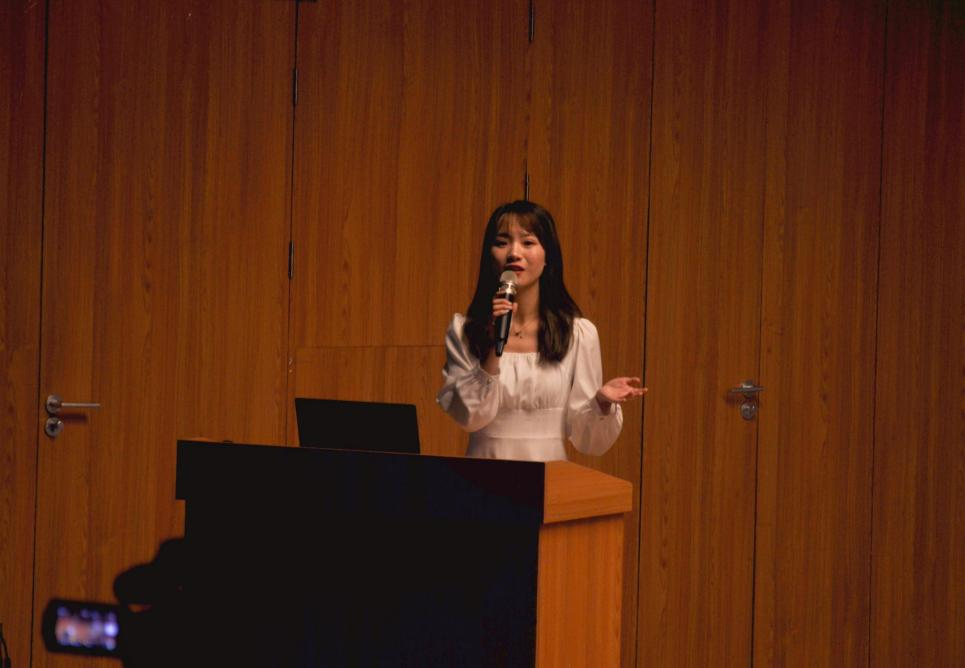 艺术学院党总支副书记李赛向同学们介绍了艺术学院的党建工作、辅导员工作及分团委、学生会工作,希望同学们练就本领,学有所成。