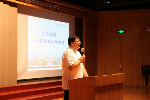 胡宝嘉院长介绍了艺术学院的基本情况,希望2019级新生“学知识、学做人、学做事”,度过充实美好的大学生活。