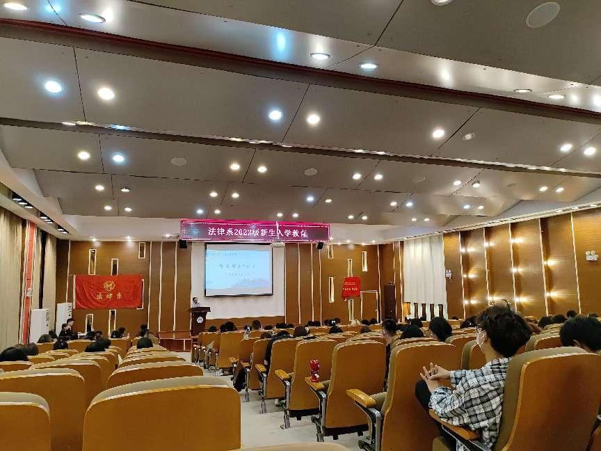 2022年9月21日,法律系在理工图书馆学术报告厅举办2022级新生入学教育。法律系系主任朱京安、常务副主任邢晓晖、党总支书记张莉、2022级辅导员赵振杰、22级法律系全体新生参与本次活动。